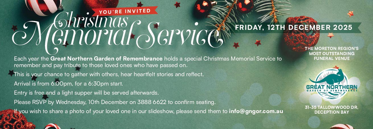 To celebrate our loved ones, The Great Northern Garden of Remembrance at Deception Bay is holding a Christmas Memorial Service to remember all of the wonderful men and women in our lives.